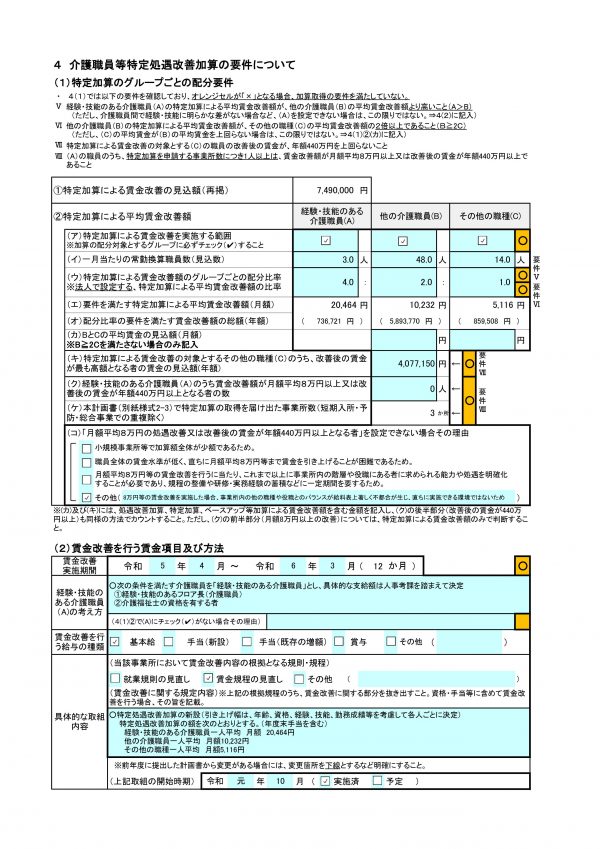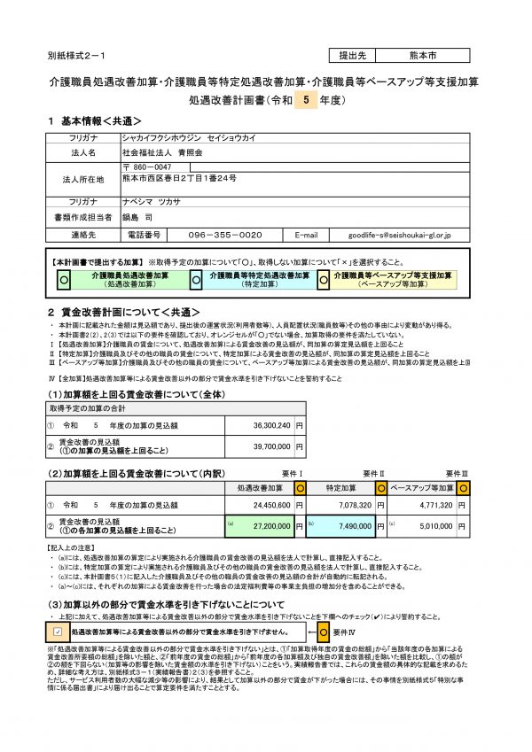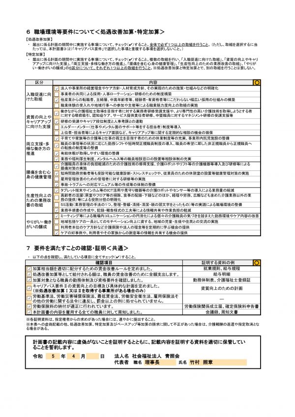 令和5年度 介護職員処遇改善加算・介護職員等特定処遇改善加算・介護職員等ベースアップ等支援加算処遇改善計画書