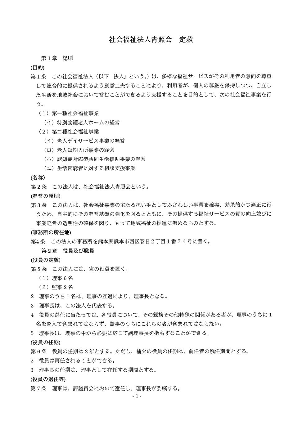 社会福祉法人青照会 定款